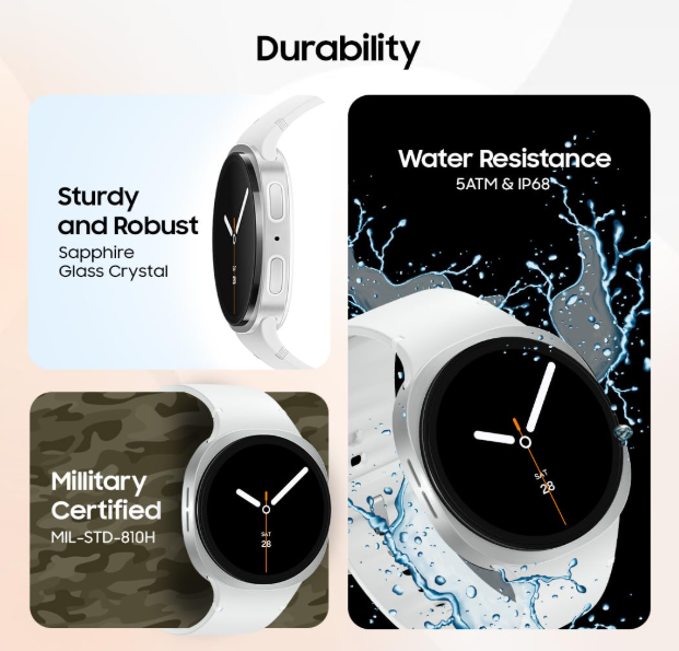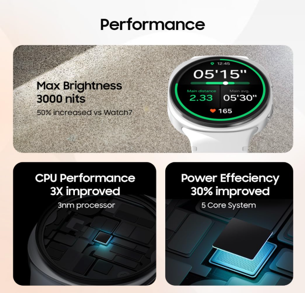 • The Watch 8 is powered by the custom-designed Exynos W1000 chip, which is the main reason for its hard work.